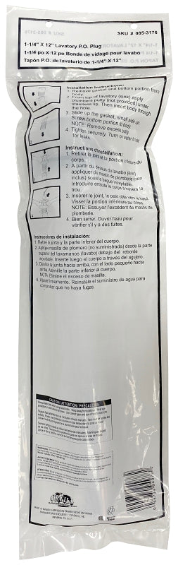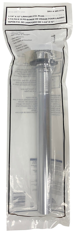 ProSource Lavatory Plug, Pull-Out, Chrome, Dimensions: 1-1/4 in D x 12 in H, Includes: (1) Chrome Body Set, (1) White Stopper and (1) Chrome Chain