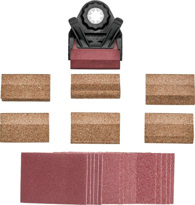 Fein Profile Grinding Set, Includes: Holder with 6 Different Profile Inserts, V-shape, Trapezoid Shape, Straight Shape, Large Convex Shape (large), Small Concave, Convex Shape, Grits 80, 120, 180, (5) Sanding Sheet