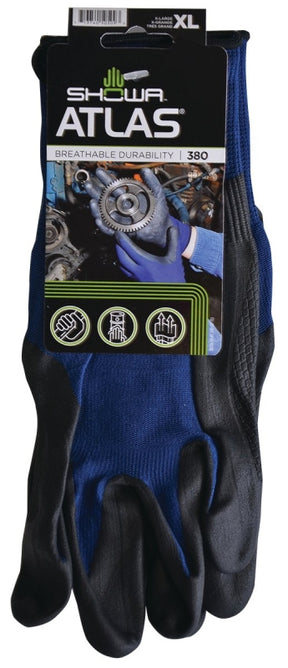 Showa 380XL-09.RT Coated Gloves, XL, 8-21/32 to 10-15/64 in L, Elastic Wrist, Seamless Knit Cuff, Nitrile Foam Coating