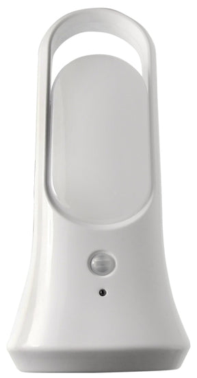 This multi-functional light can sit anywhere on its base or be held or hung by its integrated handle. And It has a 60 Lumens flashlight built into its base. You can turn it off and on manually or use its motion sensor for automatic operation. The nightlight casts a pleasant glow and it is easily portable as a lantern for power outages or emergencies. Its flashlight casts a bright floodlight that thoroughly illuminates a broad area. A USB cord for its rechargeable battery is included.