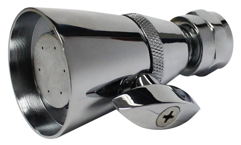 Wall-mounted shower head is fully adjustable with a maximum output of 1.8 gpm. Side-dial makes it easy to change spray output. Chrome-plated brass housing.