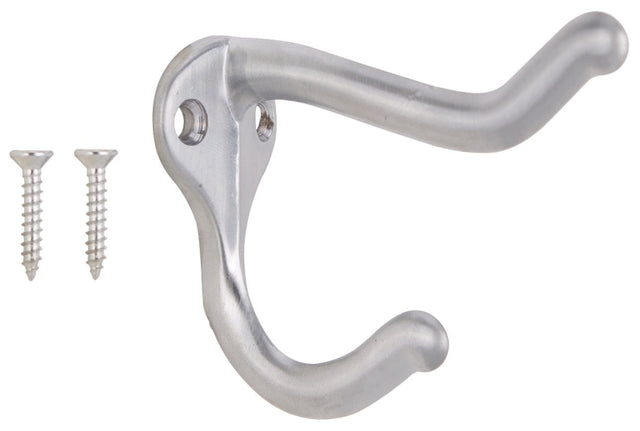 ProSource H62-B075 Coat and Hat Hook, 22 lb, 2-Hook, 1 in Opening, Zinc, Satin Chrome