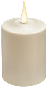 This indoor/outdoor LED pillar candle offers a warm white realistic flickering or full on flame.