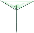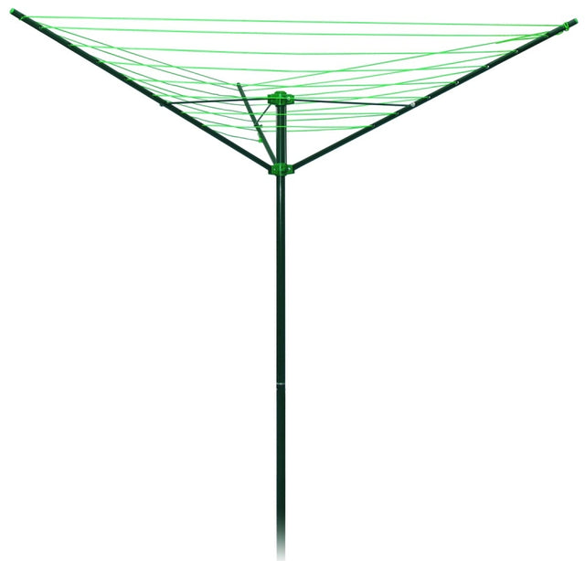 Painted steel construction. Completely assembled. Plastic ground socket included. PVC coated clothesline. Rugged carry bag. Large space for good air circulation. Easy to carry, remove and store.