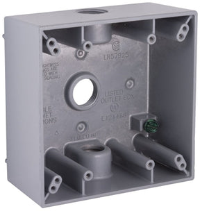 Hubbell 5333-0 Weatherproof Box, 18.3 cu-in, 3-Outlet, 2-Gang, Aluminum, Gray, Powder-Coated