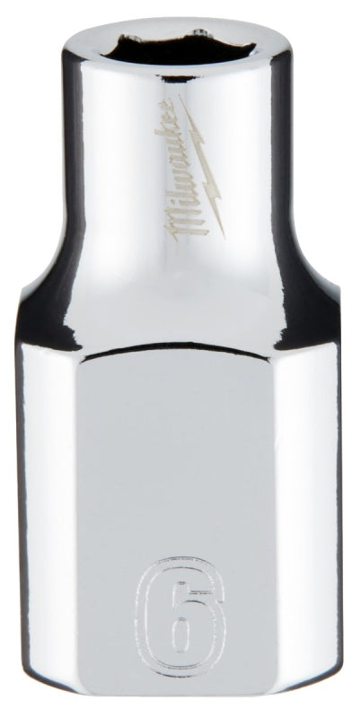 Milwaukee 45-34-9076 Socket, 6 mm Socket, Standard Socket, 3.543 in OAL, 3/8 in Drive, 6-Point, Chrome Vanadium Steel