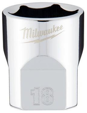 Milwaukee 45-34-9088 Socket, 18 mm Socket, Standard Socket, 3.543 in OAL, 3/8 in Drive, 6-Point, Chrome Vanadium Steel