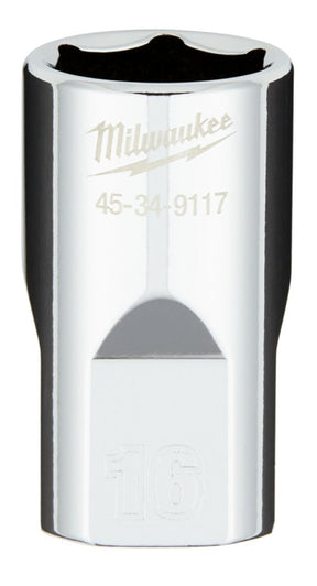 Milwaukee 45-34-9117 Socket, 16 mm Socket, Standard Socket, 1/2 in Drive, 6-Point, Chrome Vanadium Steel, Chrome