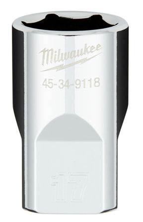 Milwaukee 45-34-9118 Socket, 17 mm Socket, Standard Socket, 1/2 in Drive, 6-Point, Chrome Vanadium Steel, Chrome