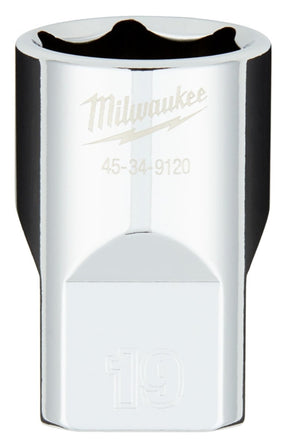 Milwaukee 45-34-9120 Socket, 19 mm Socket, Standard Socket, 1/2 in Drive, 6-Point, Chrome Vanadium Steel, Chrome