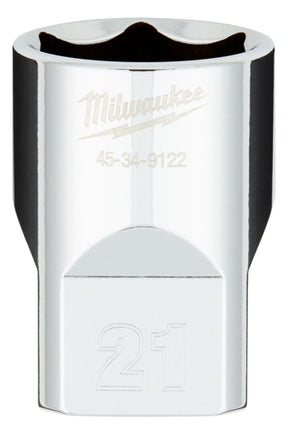 Milwaukee 45-34-9122 Socket, 21 mm Socket, 1/2 in Drive, 6-Point, Chrome Vanadium Steel, Chrome