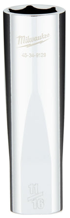 Milwaukee 45-34-9129 Socket, 11/16 in Socket, Deep Socket, 1.1 in OAL, 1/2 in Drive, 6-Point, Chrome Vanadium Steel
