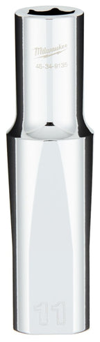 Milwaukee 45-34-9135 Socket, 11 mm Socket, Deep Socket, 0.85 in OAL, 1/2 in Drive, 6-Point, Chrome Vanadium Steel