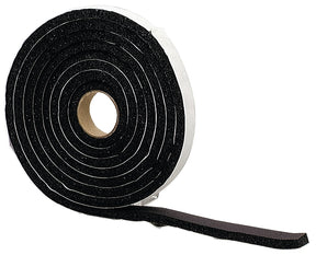 Door and window high density, self-adhesive weatherproofing tape. Tough sponge rubber ensures long-lasting seal. Can be trimmed to fit application.