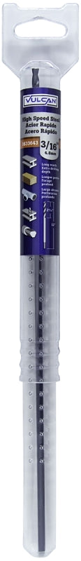 Vulcan 362691OR Drill Bit, 3/16 in Dia, 12 in OAL, Twist Flute, Flat Shank