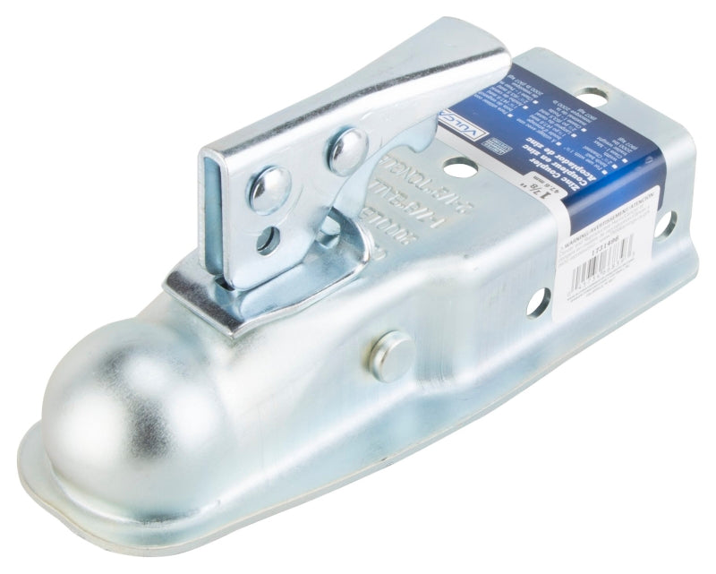 Vulcan Trailer Coupler, 2000 lb Towing, 1-7/8 in Trailer Ball, 2-1/2 in Channel Width, Lock Hole: 10.4 mm, Lever Latch, Steel, Zinc, Silver