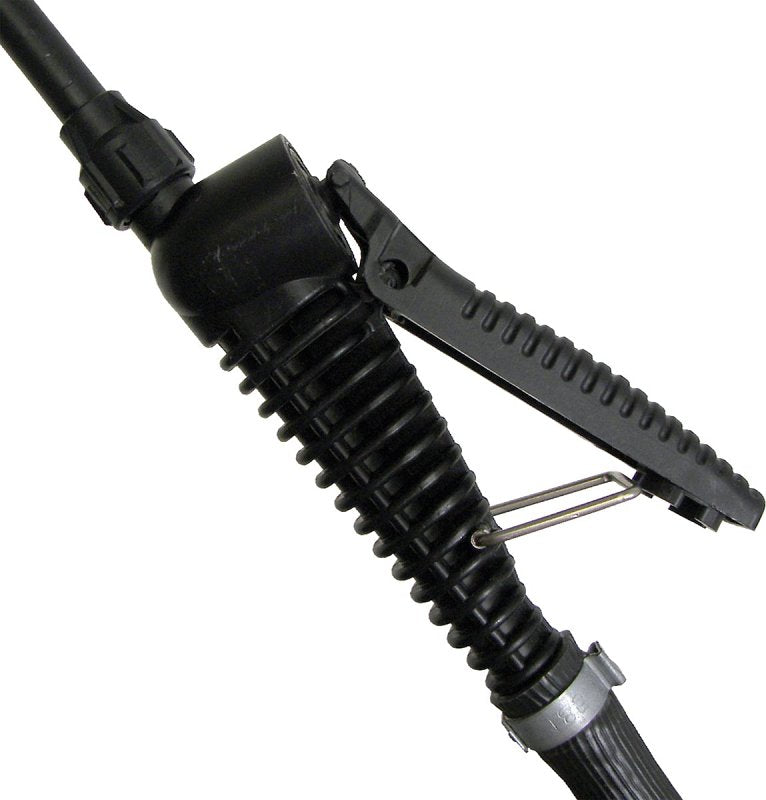 - Adjustable poly cone nozzle sprays coarse stream to a fine mist