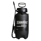 The CHAPIN industrial cleaner/degreaser sprayer is specifically designed for a variety of cleaners and degreasers used on HVAC, heavy equipment, engines and more. The 2 gal poly tank comes with a wide 4 in mouth opening for easy filling and cleaning. Adjustable poly cone nozzle sprays coarse stream to a fine mist. Featuring Viton seals and gaskets, pressure relief valve and lock-off feature to prevent accidental discharge.