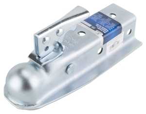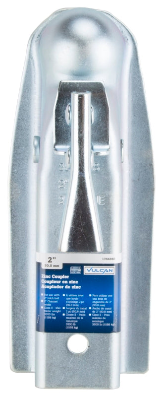 Vulcan Trailer Coupler, 3500 lb Towing, 2 in Trailer Ball, 2 in Channel Width, Lock Hole: 13.4 mm, Lever Latch, Steel, Zinc, Silver