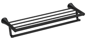 Made up of smooth, fluid curves, the Mikah collection offers a soft modern style that can add a touch of warmth to the bathroom. The towel shelf helps complete the design of the space for a cohesive look while offering additional storage. Available in matte black, a contemporary, yet surprisingly neutral, modern black finish.