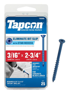 Tapcon 24265 Concrete Screw Anchor, 3/16 in Dia, 2-3/4 in L, Steel, Climaseal