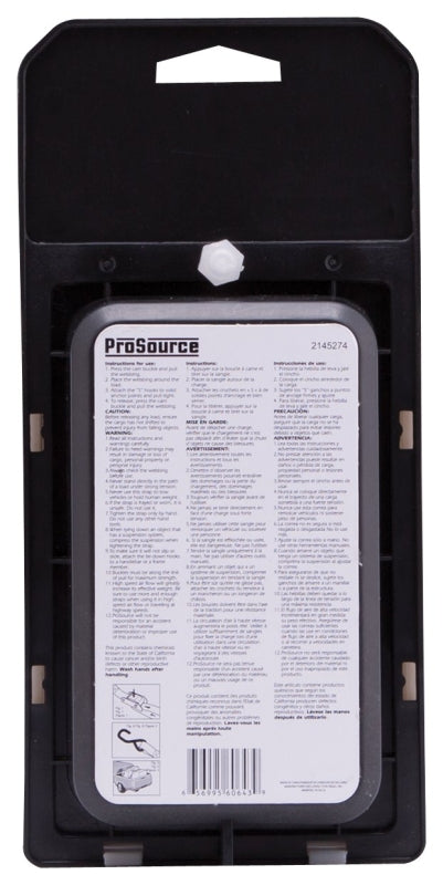 ProSource RT45481 Tie-Down, 1 in W, 10 ft L, Polyester Webbing, Metal Buckle, Black, 400 lb, S-Hook End Fitting