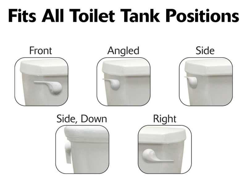 Designed to fit the majority of toilets, the Korky StrongARM handle and lever easily adjusts to fit all tank positions including: front, side, angle, right and down. This toilet lever is used with both 2 and 3 in toilet flappers and canister style flush valves, the engineer-grade material in common stress areas performs as well as brass and aluminum levers. The StrongARM lever is adjustable to eliminate the need to bend for fitment and fits most popular brands, including American Standard, Kohler, Toto and others. The wave style toilet flush handle, in a white finish, is a great way to upgrade any toilet and compliment the bathroom's decor. Easy to install.