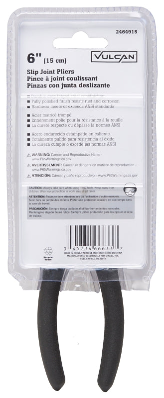 Vulcan PC916-21 Slip Joint Plier, 6 in OAL, 1 in Jaw Opening, Black/Blue Handle, Non-Slip Handle, 1 in W Jaw
