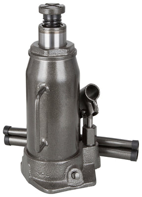 Heavy-duty, wide base for stability, serrated saddle for slip resistance. Adjustable top screw for additional height variation. Precision-machined hydraulic assembly and ram post. Long steel pump handle for easy pumping action and extra leverage. Safety overload valve.