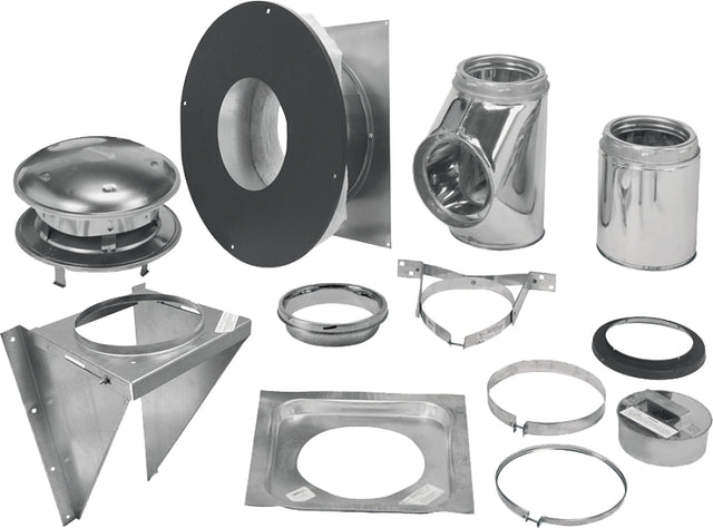 - Includes: (1) Round Top (1) Wall Band (1) Insulated Tee (1) Wall Support Kit (1) Insulated Wall Thimble (1) 12 in Pipe Section (1) Smoke Pipe Adapter and (1) Finish Collar