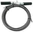 This drain augur is for small household drains. It's made of high carbon, oil tempered, non-kink, flat 1/4 in steel wire and has a closed wound spring boring head. The drum has a steel rod frame holder for easy storage and use.