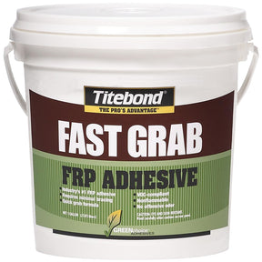 Titebond FRP Construction Adhesive, 1 gal Net Content, Pail Container, Liquid Form, Characteristic Odor/Scent, Brown, 50 sq-ft Coverage Area, 100,000 cPs Viscosity, 212 deg F Boiling Point, >199.9 deg F Flash Point, 27.04 g/L VOC, 50 to 90 deg F Application, Trowel Application Method, Applicable Materials: Cement, Drywall, Plastic, Wood