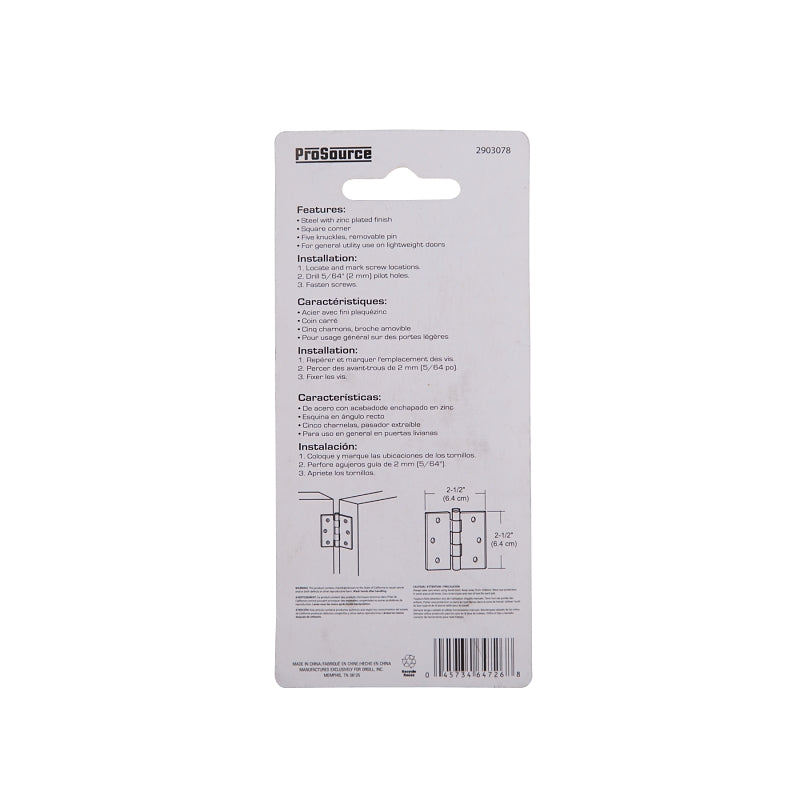 The ProSource utility hinges are constructed of high quality stainless steel ensuring durability and dependability. It has a five knuckle full mortise design and allows for easy installation or removal of lightweight doors. The screws are included.