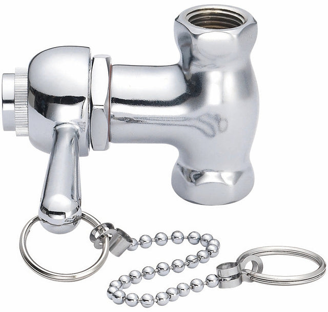 Brass body, chrome-plated, spring-loaded self-closing mechanism, heavy-duty pull chain and clips, for indoor/outdoor use, replaceable stem, cam and spring mechanism.