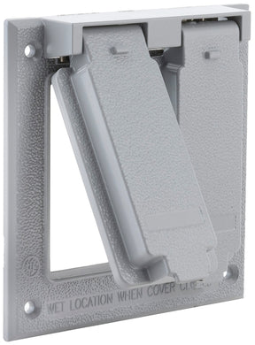 Cast cover for use whenever weatherproof protection is required for an outdoor receptacle. Heavy-duty metallic construction will last the life of the installation. Self-closing lids assure weatherproof protection when the receptacle is not in use. Comes with installation instructions, gasket and hardware. UL, CSA Compliant.
