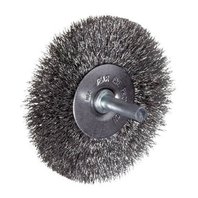 Weiler Wire Wheel Brush, 3 in Diameter, 1/4 in Arbor/Shank, Crimped Bristle, Carbon Steel Bristle, 0.014 in Dia Bristle, Bristle Trim Length: 13/16 in, 20,000 rpm Speed, Coarse Grit Grade