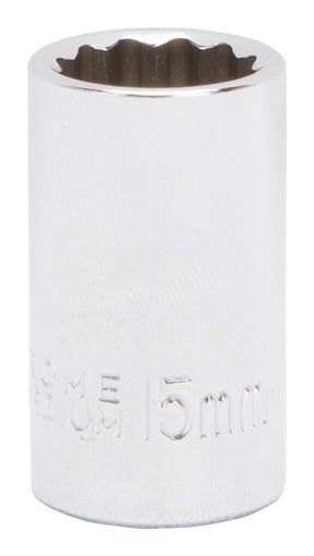 Vulcan MT6529861 Drive Socket, 15 mm Socket, 1/2 in Drive, 12-Point, Chrome Vanadium Steel, Chrome
