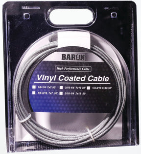 Baron 50201/50210 Aircraft Cable, 1/8 to 3/16 in Dia, 50 ft L, 340 lb Working Load, Galvanized Steel