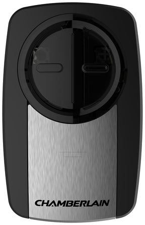 Chamberlain Garage Door Remote Control, 2 Buttons, 800 ft Operating, Stainless Steel, Silver, Dimensions: 3.2 in H x 2.04 in W x 0.72 in D, Suitable for: Chamberlain, Craftsman, Genie, LiftMaster, Linear, Overhead Door and Stanley Garage Doors, Includes: Batteries