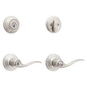 Kwikset Signature Series 991TNL 15 Combination Lockset, Lever Handle, Tustin Design, Satin Nickel, 2 Grade, Zinc