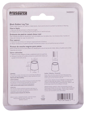 The ProSource leg tip can be used on stools, chairs and furniture legs. It offers scratch protection on your floors and helps to keep furniture in place. The tips are made of non-skid protective rubber.