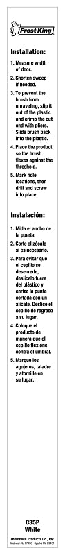 Frost King C35PH Door Sweep, 36 in L, 1-3/4 in W, Plastic Flange