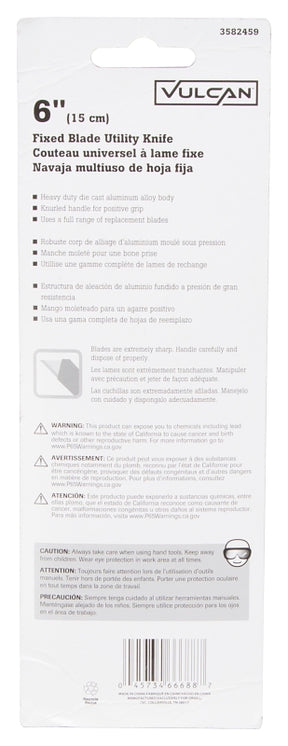 The Vulcan fixed blade utility knife has a heavy-duty die cast aluminum alloy body with a knurled handle for positive grip and a full range of replacement blades.