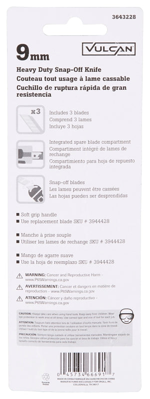 Vulcan JL-VT45534 Utility Knife, 4 in L Blade, 9 mm W Blade, Alloy Steel Blade, Soft-Grip Handle
