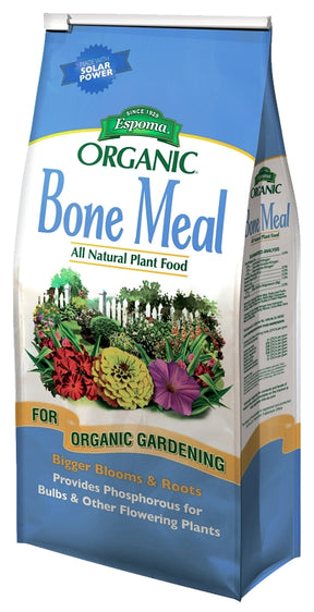 Espoma Bone Meal is an all natural organic source of nitrogen and phosphorus. Bone Meal helps develop sturdy root systems and promotes plant growth and is ideal as a supplement for bulbs, flowers and roses.