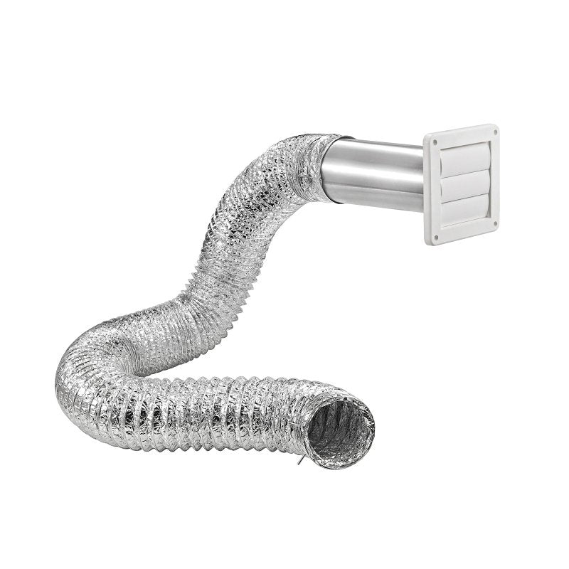 - Includes: (1) 4 in White Plastic Exhaust Wall Louvered Vent (1) 4 x 11 in Aluminum Snap Lock Tail Pipe (1) 4 in x 5 ft Foil Flex UL 2158A Clothes Dryer Transition Duct and (2) 4 in Metal Spring Clamps
