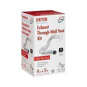 The Lambro white plastic louvered clothes dryer exhaust vent kit featuring 4 in x 5 ft foil flex UL 2158A is ideal for venting through the wall. This kit is used for clothes dryer exhaust and other general venting applications that require moist air and humidity from exiting the home. The built in flaps prevent back drafts and critters from entering the home through the vent. The plastic vent has a UV additive to prevent premature fading due to the sun.