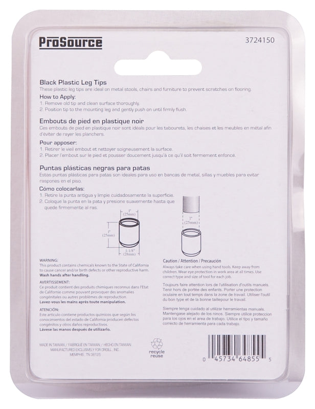 The ProSource furniture leg tip plastic leg tips can be used on stools, chairs and furniture legs. Helps protect floors from being scratched.