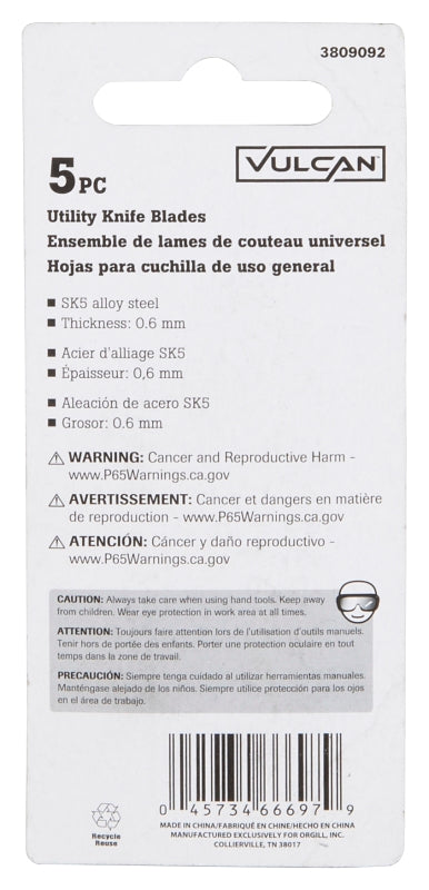 The Vulcan utility knife blade is made of sk5 alloy steel with a thickness of 0.6 mm. Comes in a pack with a quantity of 5.