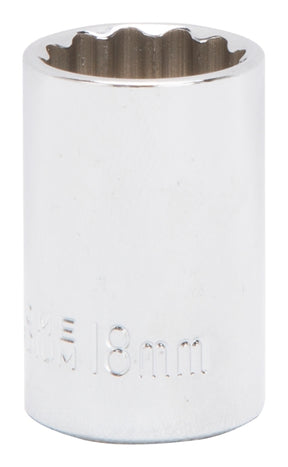 Vulcan MT6529952 Drive Socket, 18 mm Socket, 1/2 in Drive, 12-Point, Chrome Vanadium Steel, Chrome